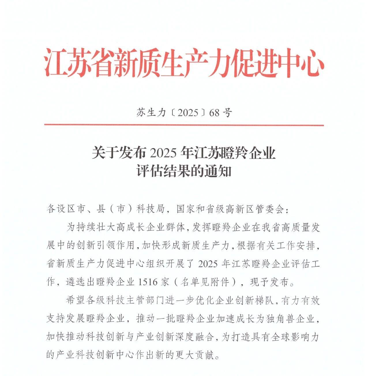 喜讯传来!我司凭借持续的创新能力和高成长性,成功通过权威评审,再度入选2025年度瞪羚企业名单!这是我们继去年获评后,连续第二年获此殊荣,标志着公司已稳稳进入高速成长通道,展现出强劲的发展潜力。