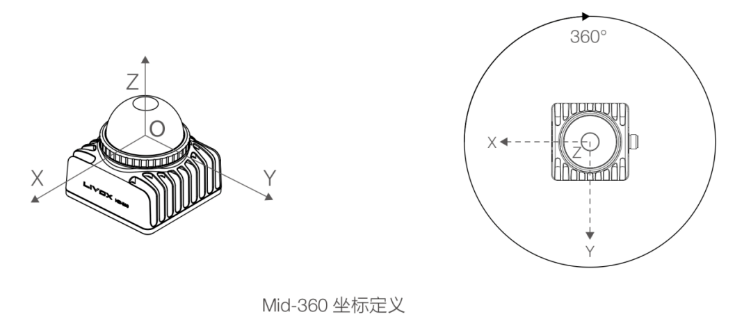 3d雷达以mid360为例,需已知其坐标定义和最大覆盖扫描范围,如图所示。